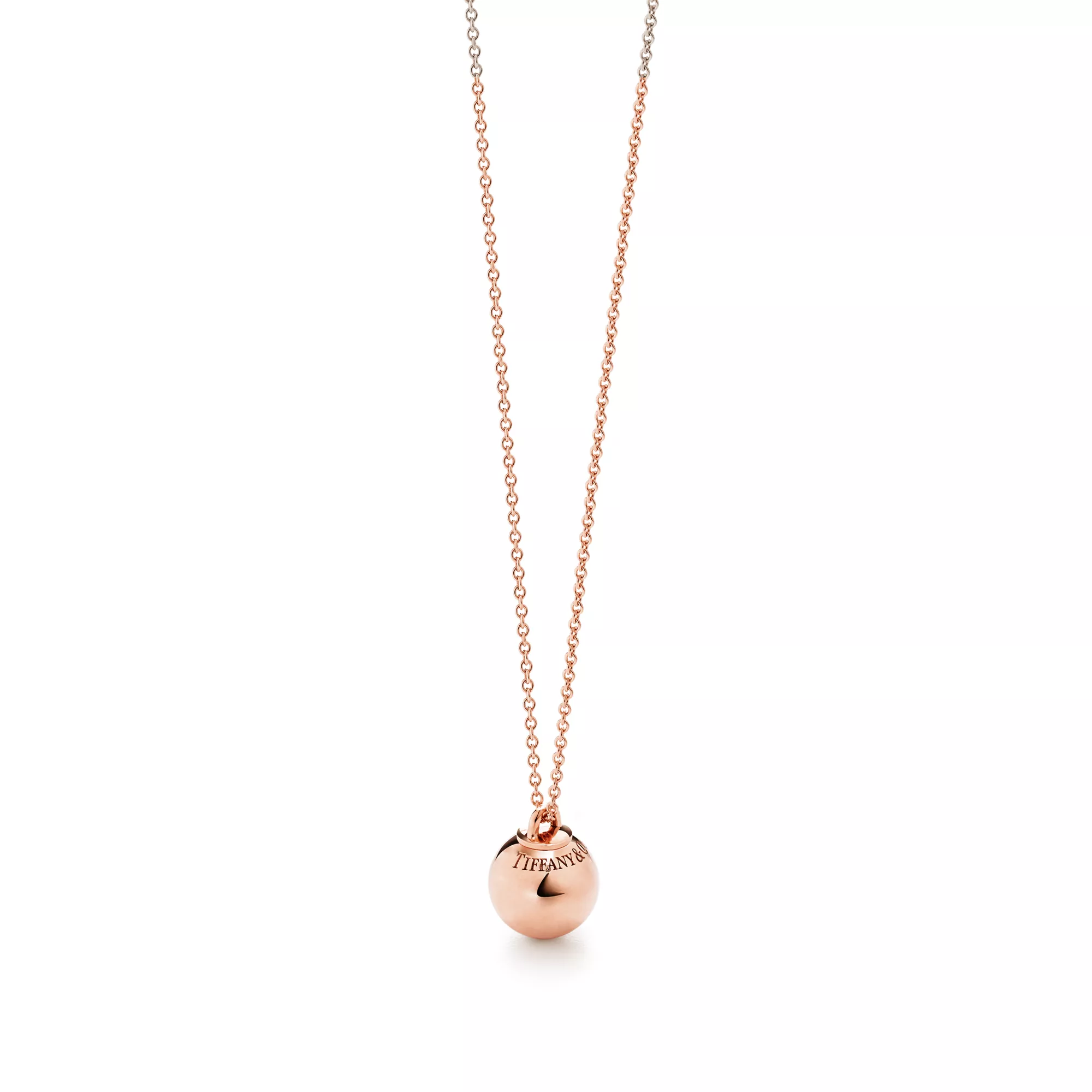 Tiffany HardWear is an expression of love’s transformative strength. Inspired by a quintessential bracelet from 1962 found in the House’s archives, HardWear embodies enduring resilience and uninhibited spirit. This pendant features a sleek 18k rose gold ball and our signature gauge link for a striking silhouette. Perfect to wear for both day and night, this design is stunning when layered with other sterling silver pendants.