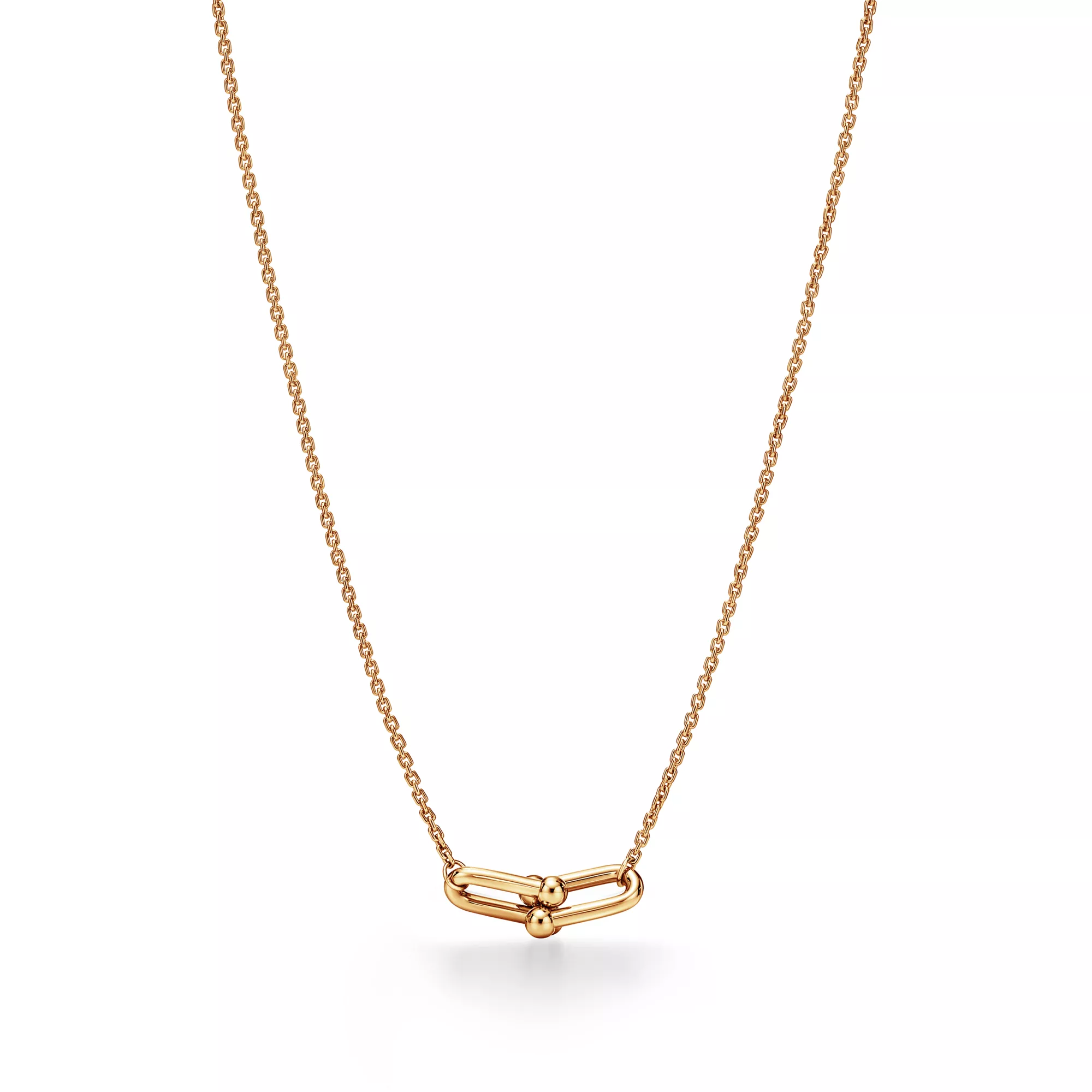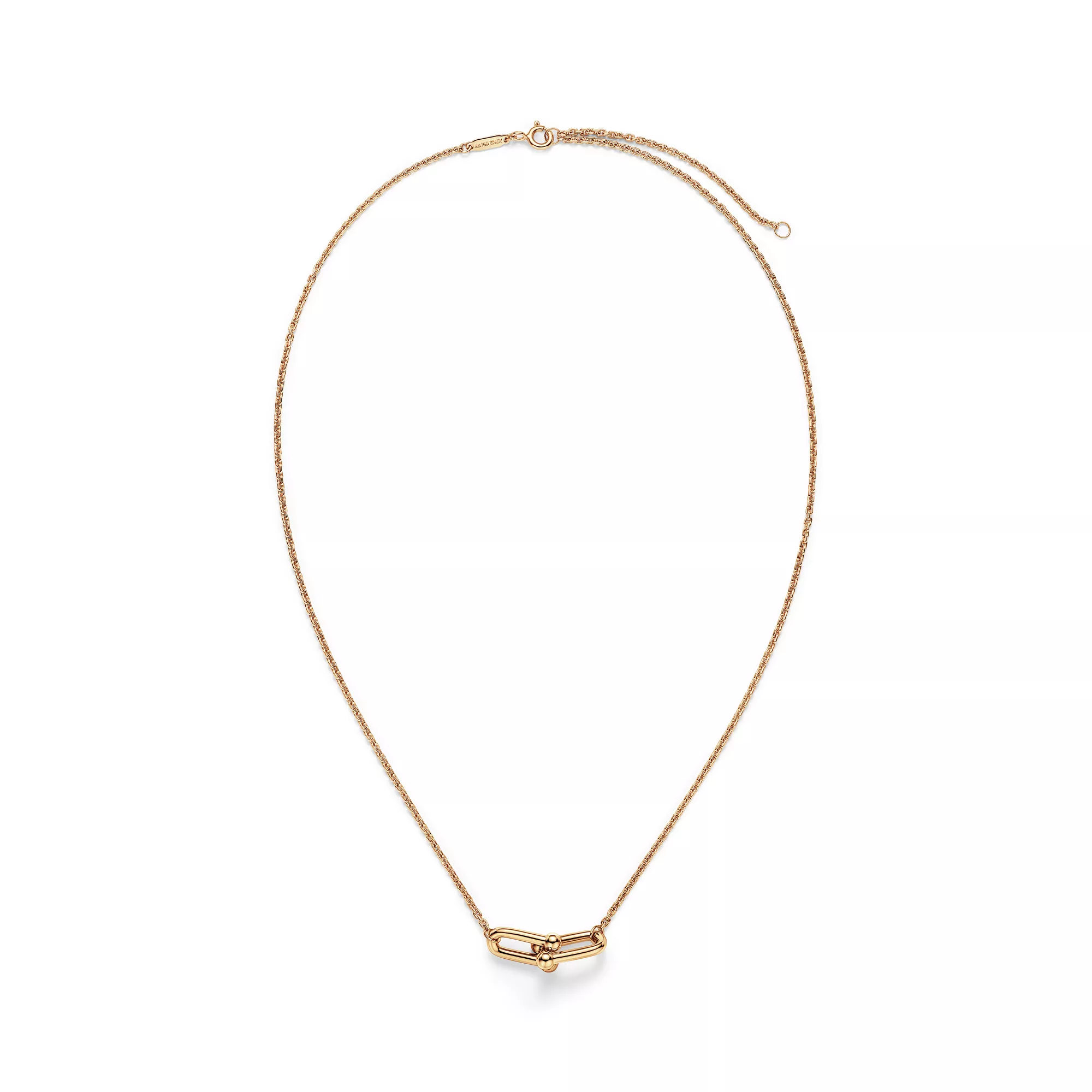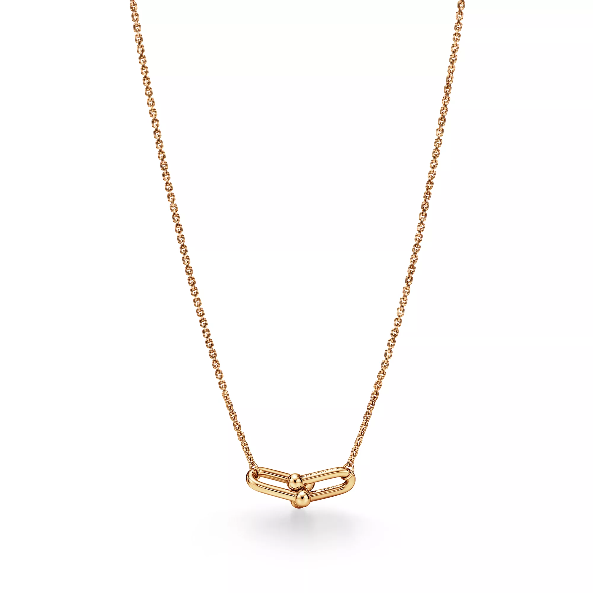 Tiffany HardWear is an expression of love’s transformative strength. Inspired by a quintessential bracelet from 1962 found in the House’s archives, HardWear embodies enduring resilience and uninhibited spirit. Today, Tiffany HardWear perpetuates this sentiment with a collection rooted in the freedom and strength that one finds in love. Like the city in which it was born, HardWear embodies the ability to be free. The collection’s signature gauge link graces an array of dynamic designs. Innovative, artfully engineered clasps create seamless canvases throughout the collection. Crafted with character, each link is finished by hand—a delicate balance of presence and proportion—then joined together, one by one, into an elegant whole. This 18k yellow gold small double link necklace is as bold as it is versatile. Wear this necklace on its own or layer it with HardWear necklaces of varying lengths for an unexpected look.
