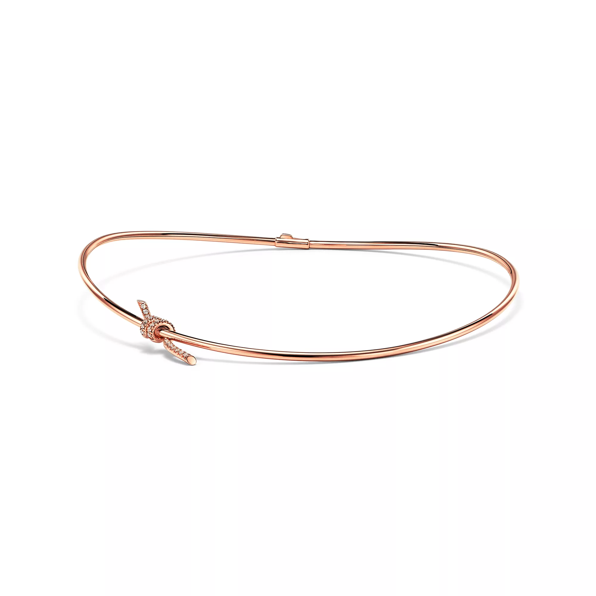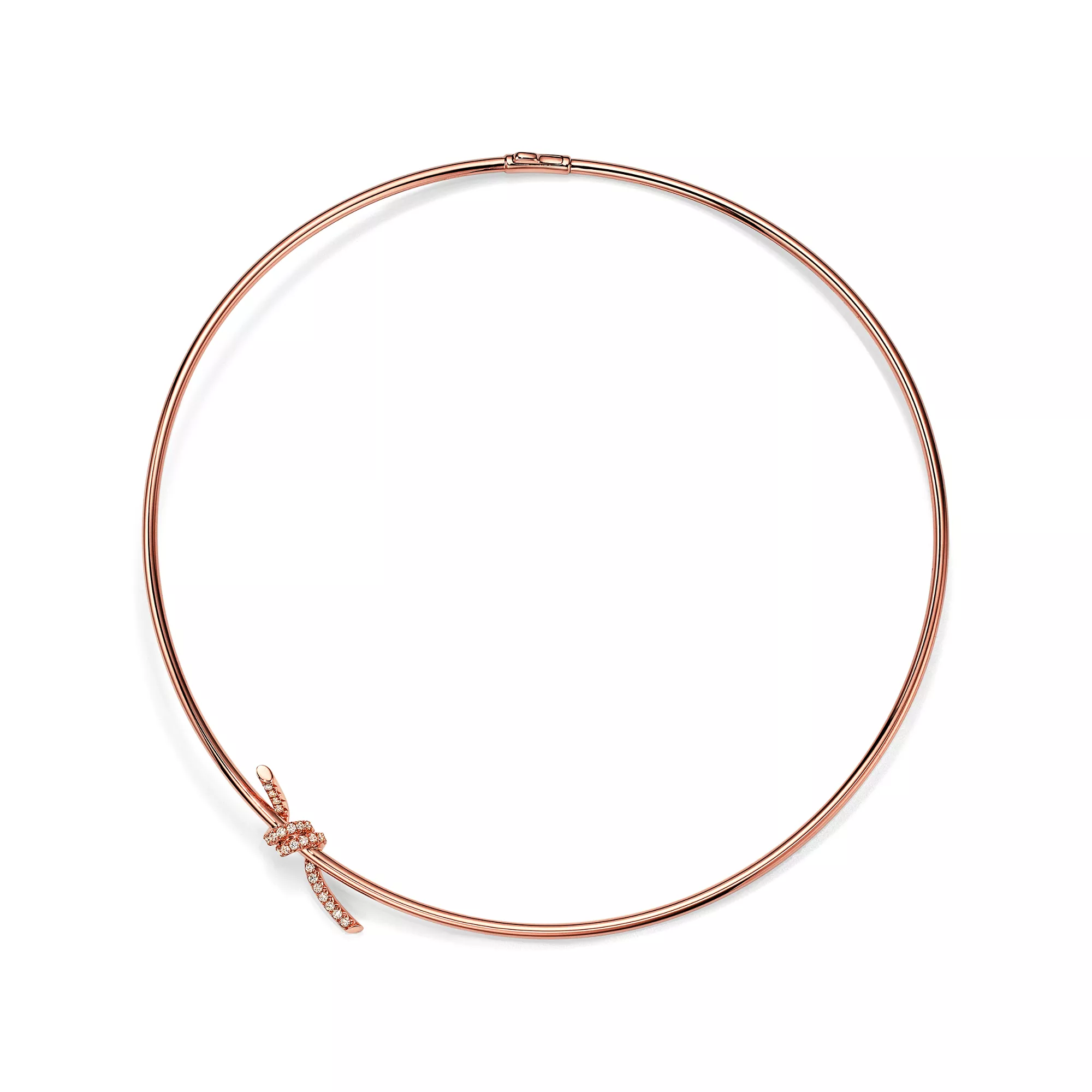 Tiffany Knot is an expression of love’s unwavering bonds. Inspired by an archival bow crafted in 1889, Knot is a symbol of life’s most enduring ties and meaningful connections. This necklace is crafted with rose gold and polished by hand for high shine. Each round brilliant diamond—specifically chosen to meet Tiffany’s high standards—is hand set at precise angles to maximise brilliance. Wear this necklace on its own or layered with necklaces of various lengths for a bold look.