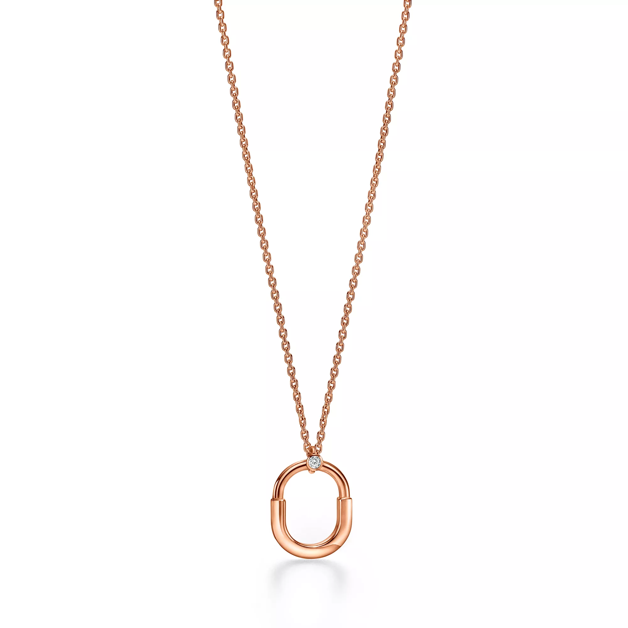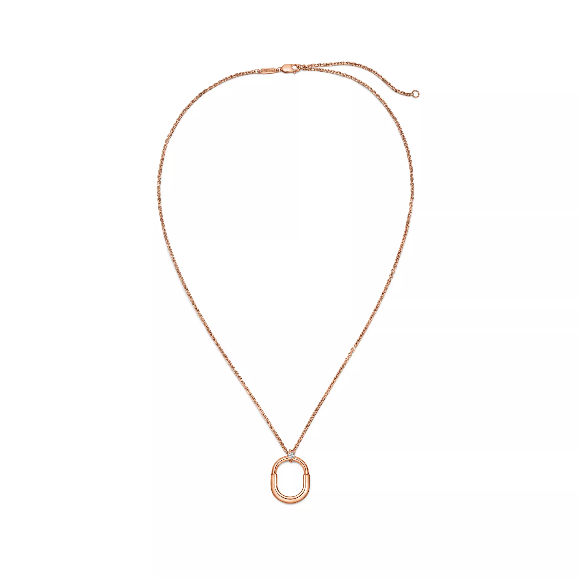 Tiffany Lock is an expression of love's enduring protection, inspired by a padlock from The Tiffany Archives that dates to 1883. Designed to keep safe that which is cherished, Lock is a universal symbol of what matters most. For maximum impact, pair this 18k rose gold and diamond pendant with other designs from the collection.