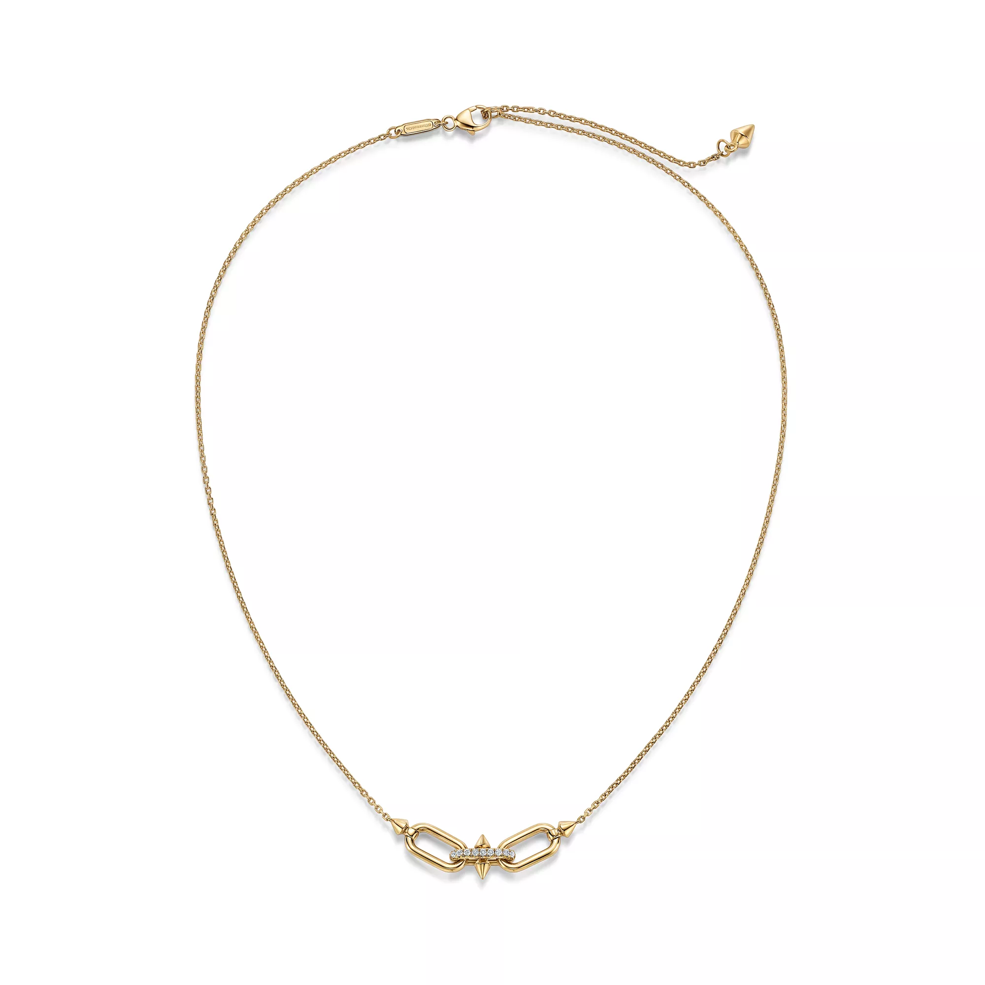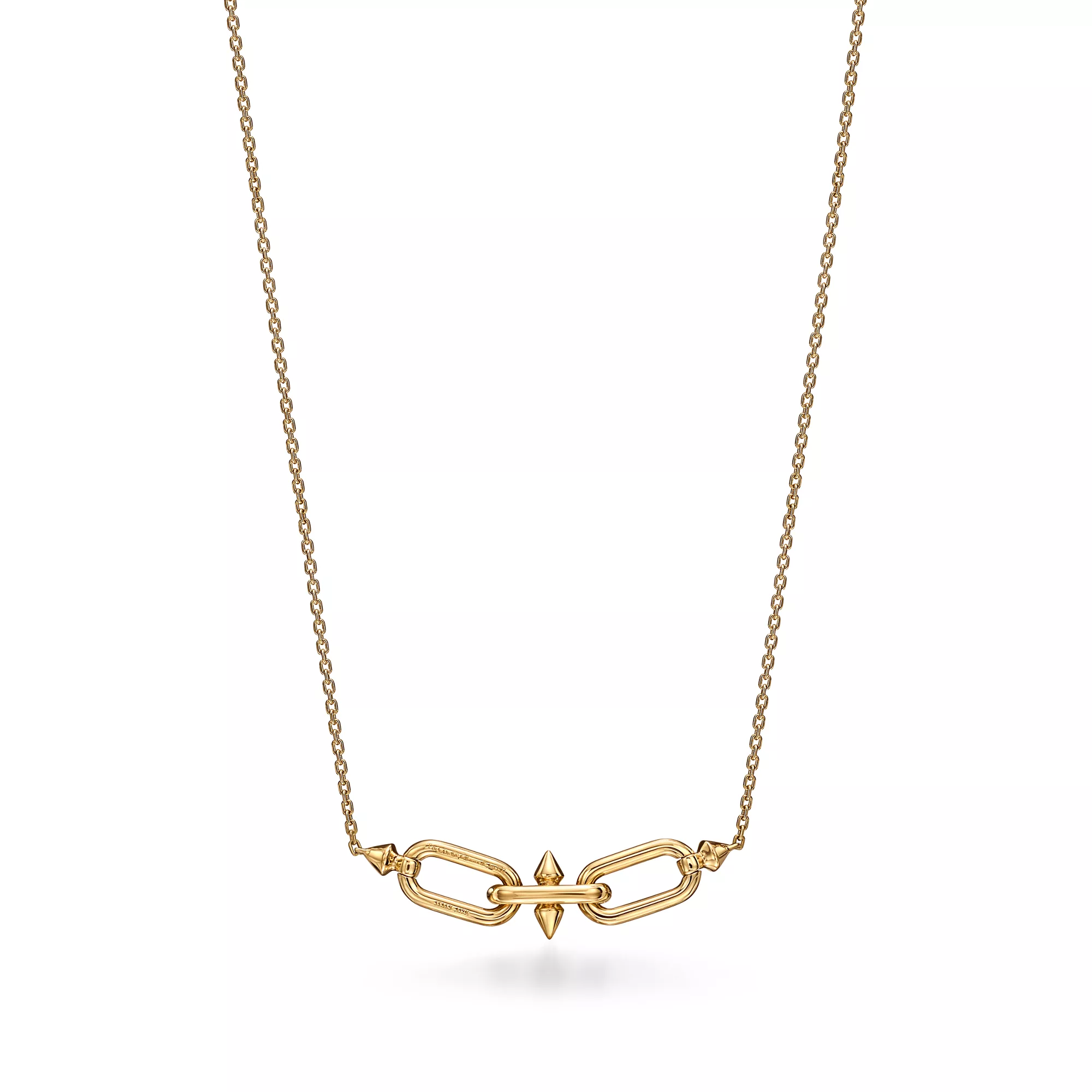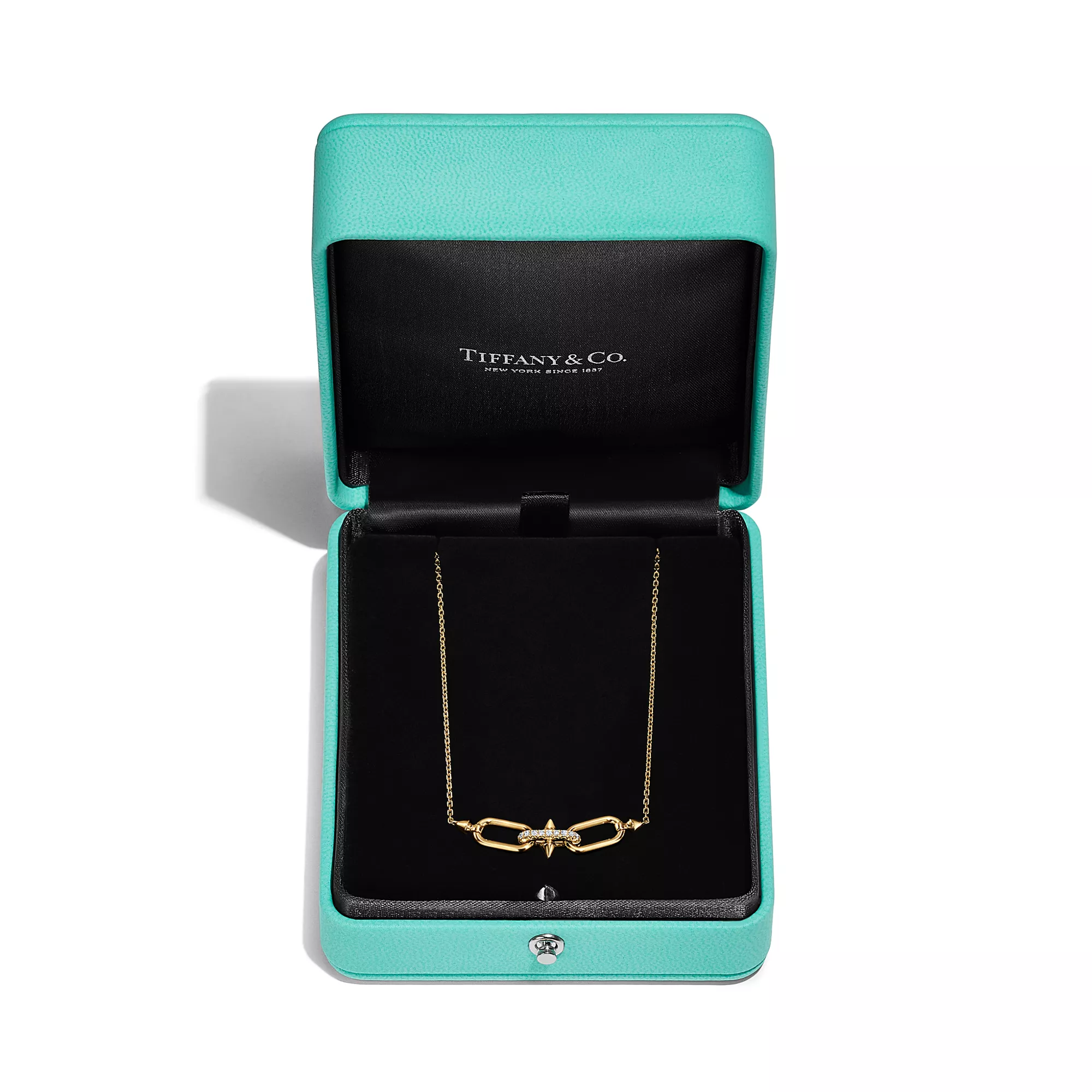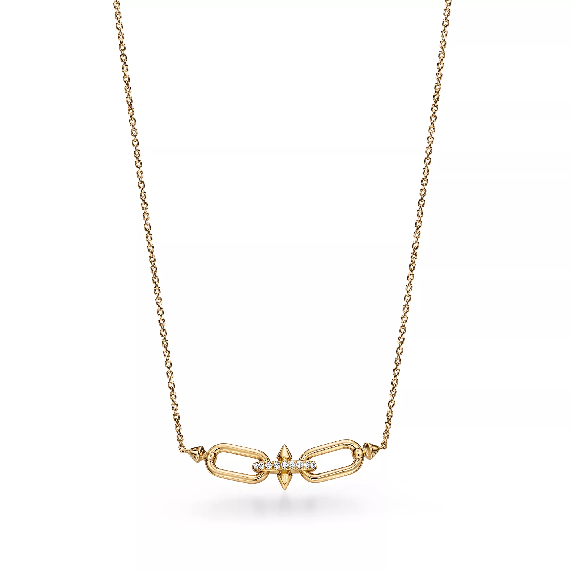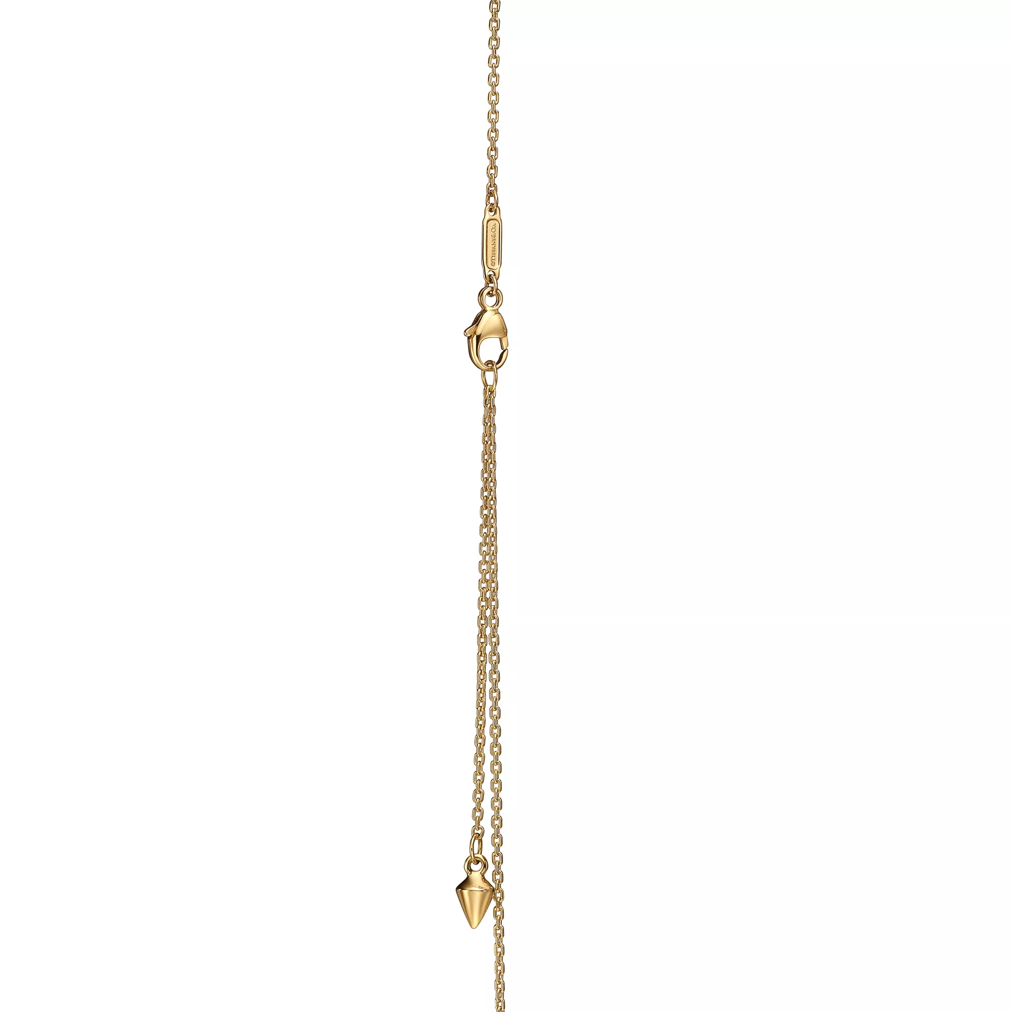 Building on the House’s legacy of collaborating with visionary artists, Tiffany Titan by Pharrell Williams is an expression of rebellion as a catalyst for creativity. These designs draw inspiration from Poseidon and his trident. An angular spear-shaped motif and softly contoured links are crafted from 18k yellow gold for a striking look. Fishtail-set pavé diamonds allow light to enter from every angle, maximising brilliance.