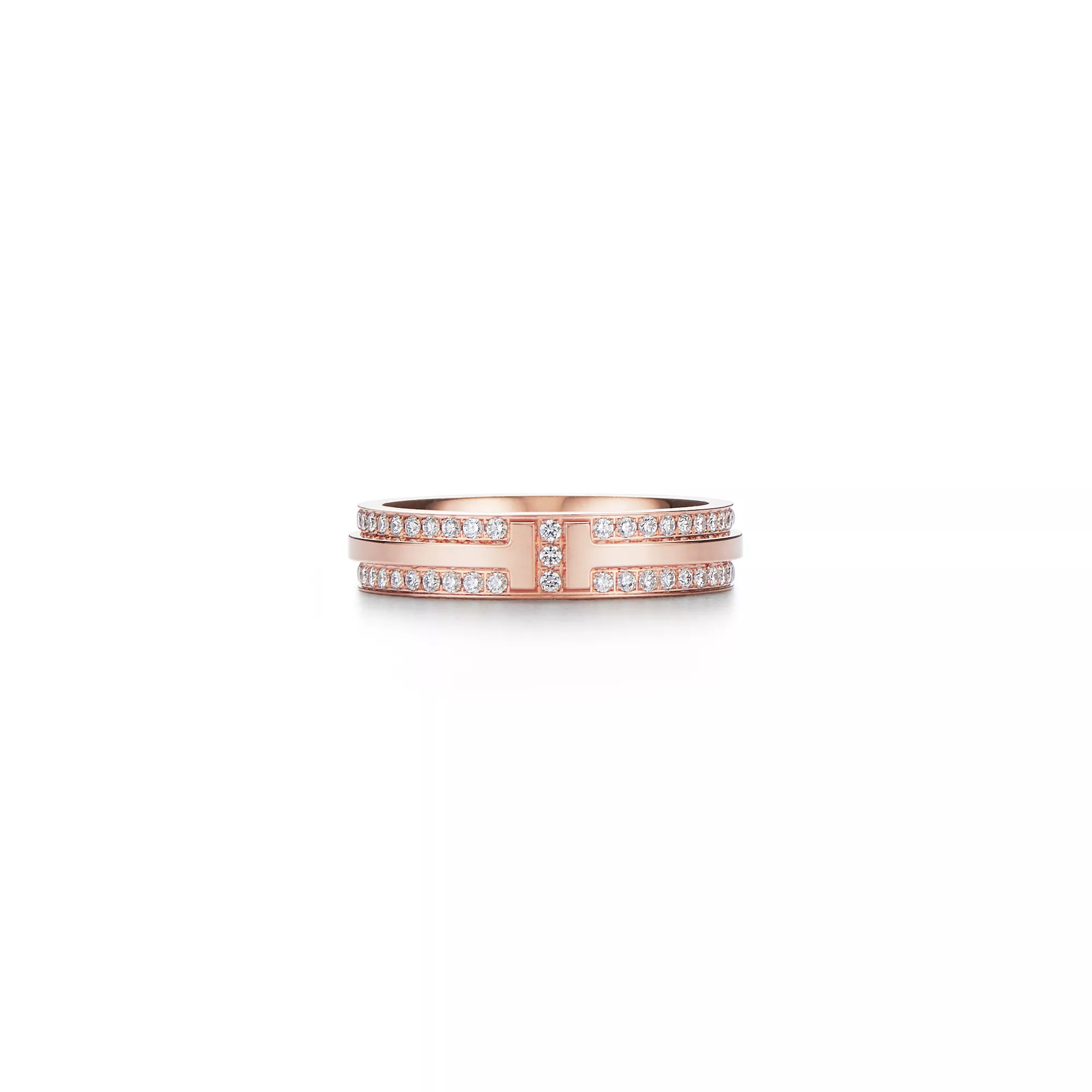Tiffany T Narrow Pavé Diamond Ring in Rose Gold