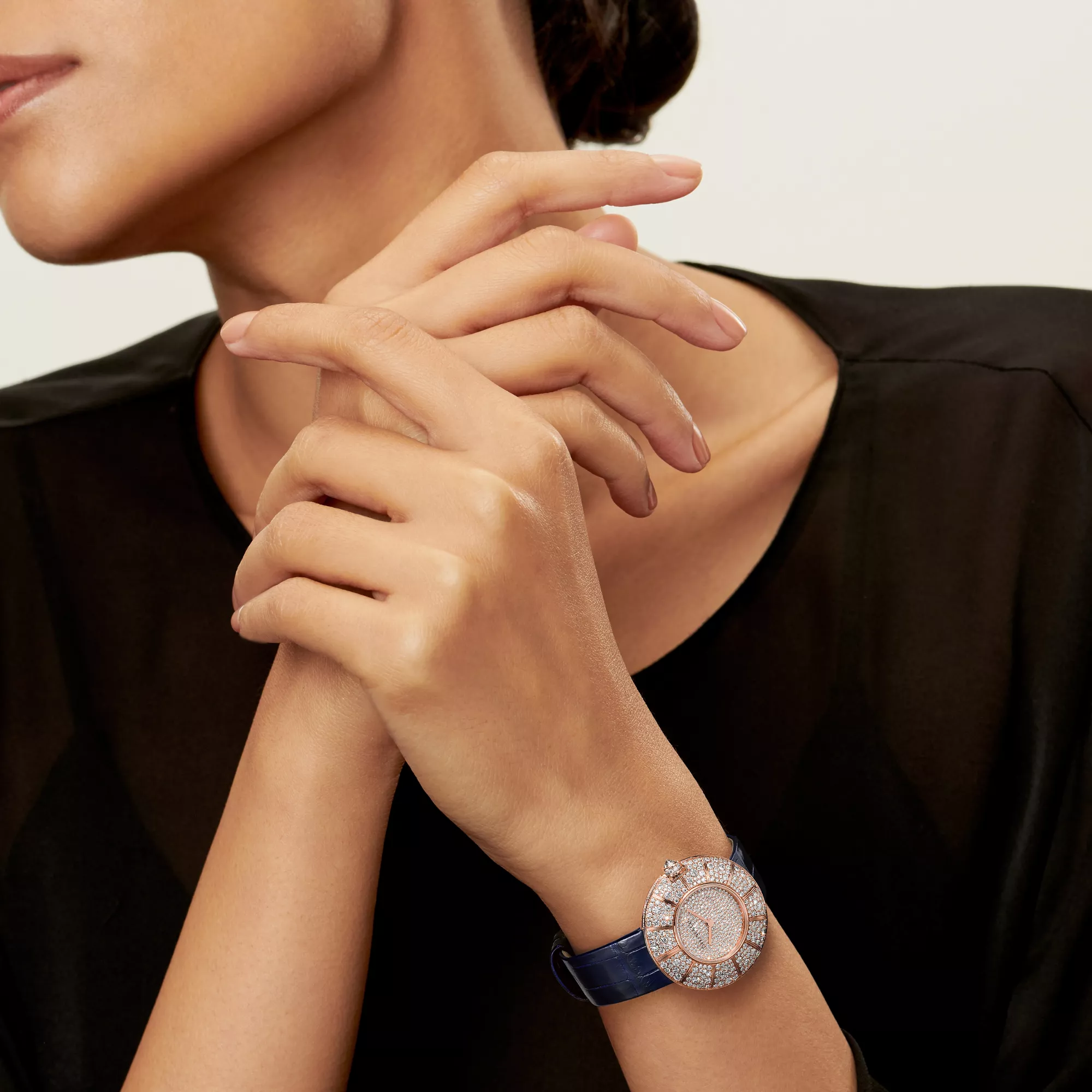 Tiffany 57 is an ode to New York City and our iconic landmark on 57th Street–the epicentre of luxury. Each Tiffany 57 watch features a scintillating display of diamonds set in an innovative snow setting to maximise brilliance. Deeply engraved lines on the bezel echo the city's distinct Art Deco aesthetic. The round, dome-shaped case is inspired by the centre of Washington Square Park as well as vintage pocket watches from The Tiffany Archives. Handcrafted in Switzerland. Forever iconic at 57th and Fifth.